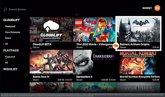 O app OnLive livre permite que você jogue imediatamente bater jogos como Batman: Arkham ® Origens, The Movie Videogame LEGO ®, e Saints Row IV ™ no seu dispositivo Android via poderosa tecnologia em nuvem da OnLive. Jogue o jogo completo, spectate outros tocando ao vivo, e compartilhar clipes de vídeo a partir de praticamente qualquer lugar.