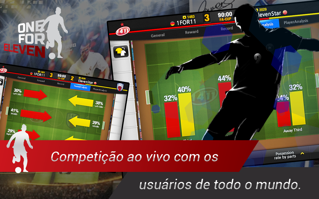 One for Eleven é um jogo de gestão de futebol em que milhões de usuários de todo o mundo contratam jogadores de futebol de verdade, criam suas próprias equipes e competem uns contra os outros em um ambiente JvJ.