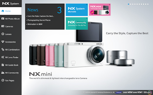 A câmera Samsung NX SMART é uma experiência orientada para o catálogo App que permite que você experimente tudo o que você ver e sentir com o seu valor NX único. A partir das informações mais recentes do produto na câmera Samsung Smart NX Sistema de belas fotos de amostra, vídeos e muito mais.