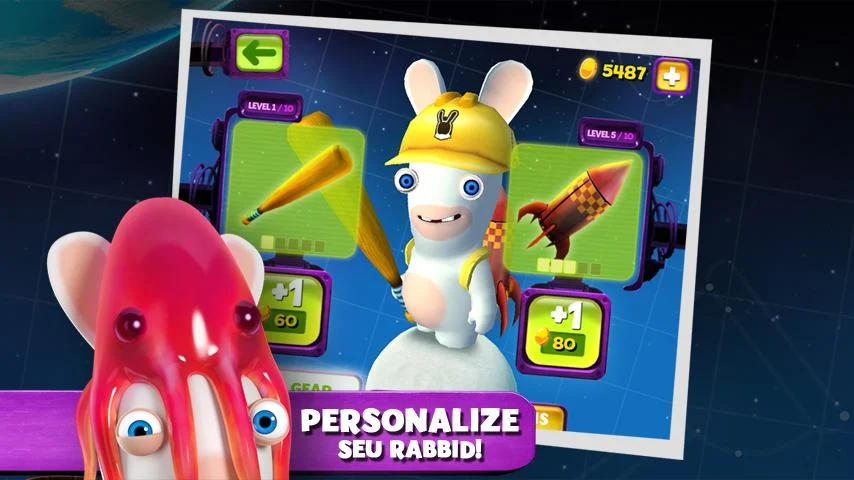 * Equipe seu Rabbid com itens especiais e domine a galáxia da diversão!