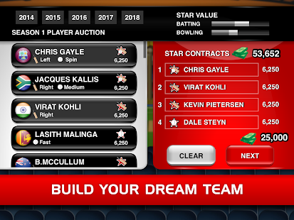 Escolha entre mais de 50 Estrelas jogadores para reforçar o seu plantel. Estrelas Batsmen são mais propensos a limpar a corda, enquanto a assinatura de um avarento Estrela Bowler irá garantir as metas que perseguição não são tão exigentes.